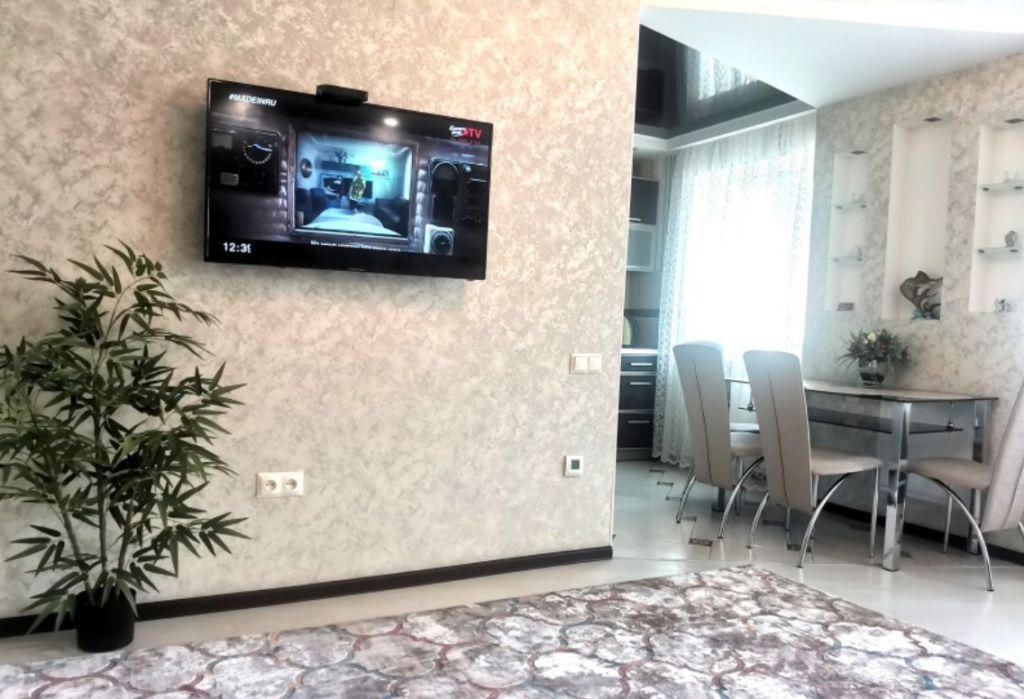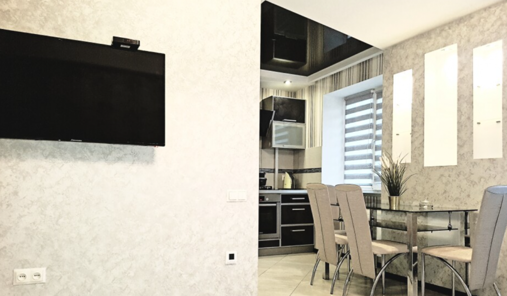 Cozy, 2-room apartment in the very center of the city. Designer renovation, modern style. There is everything you need for a comfortable stay. The ideal location of the apartment will allow you to live in the heart of Lida. There are many cozy cafes, restaurants, grocery stores, and a cinema nearby. The perfect place for romantic meetings. A large double bed with orthopedic mattress will allow both representatives of organizations and guests of the city to relax comfortably. Internet access, large LCD TV, microwave, iron, hair dryer are at your disposal.